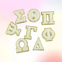 Bán Hot DIY Trang Trí Vá Sắt Trên Ủng Hộ Thêu Bán Buôn Tùy Chỉnh Long Lanh Hy Lạp Bảng Chữ Cái Chenille Vá Với Vàng Cạnh